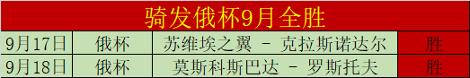 俄杯9月全胜,又是一场夺胜关键信心赛事。昨天5胜4,连胜2天,说明调整有效,骄傲的胜+表现再启动。
