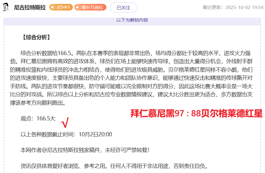 解锁内容包括:综合分析+比赛建议(数据观点+附加观点)