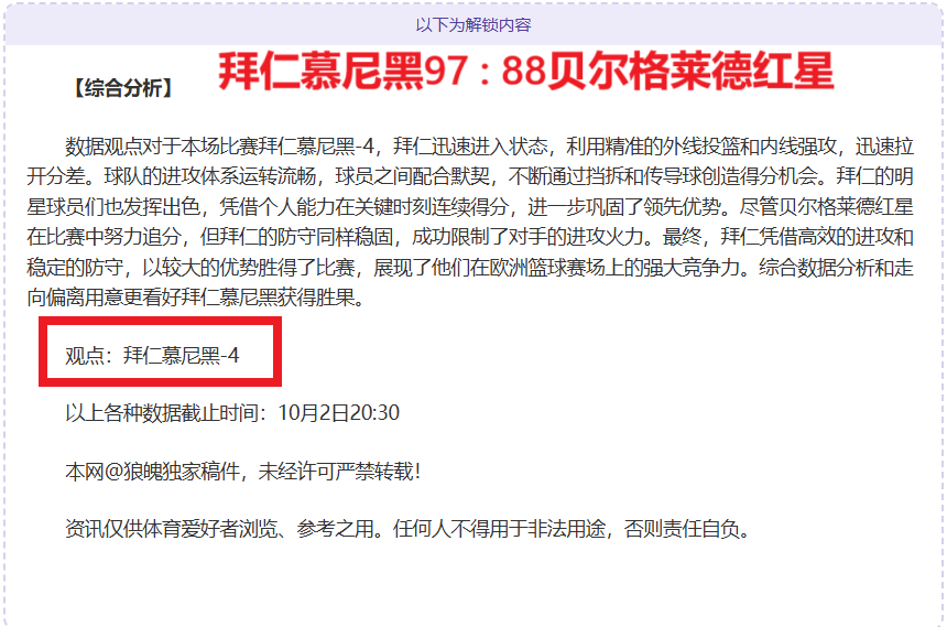 解锁内容包括:综合大数据分析+分解赛事走向+比赛建议+作者观点数据
