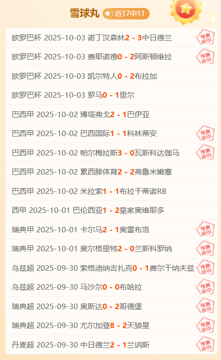 17胜11持续火热,近11天拿下净胜+13场,今天赛事依旧选择强项系列,持续稳,别错过了!笔者近期前进脚步表现仍然优秀,本日赛程继续出击,争取在稳健的基础上进一步突破!