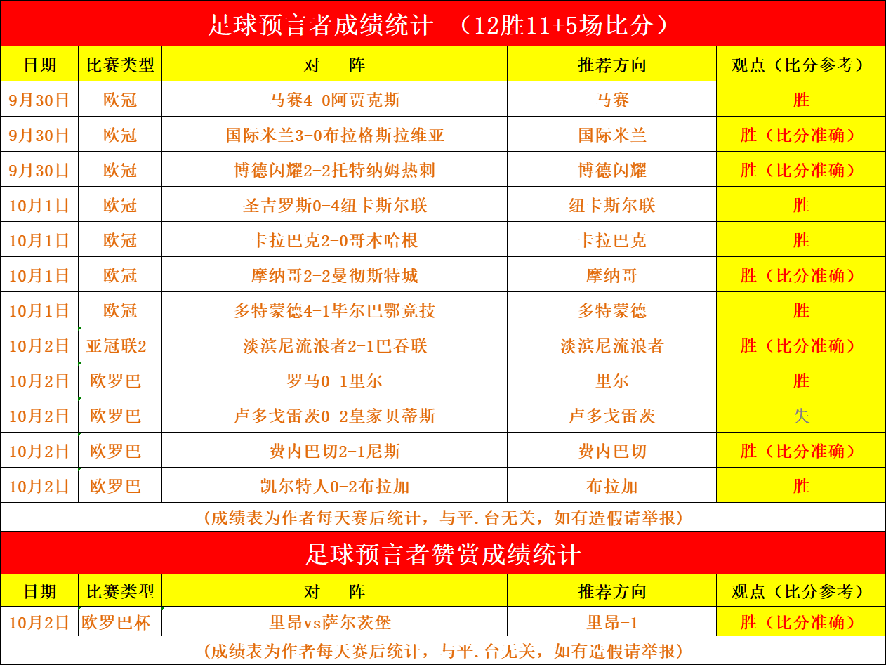 成绩回顾:12胜11+5场比分,状态相当火热;私推送上的欧罗巴比赛:里昂vs萨尔茨堡,里昂-1球的方向精准送出,2-0的比分也是稳稳拿捏;恭喜选择相信预言者的朋友;今天我们将再次扬帆起航,继续乘胜追击,追求长期稳定的表现是笔者不变的目标,足球预言者将不断为大家精心挑选值得信赖的赛事,为大家提供参考。