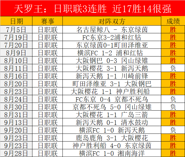 日职联3连胜,近17胜14表现相当出色。近7天胜+5,15天胜9天合计胜+13,当前状态非常好。