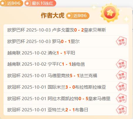 成绩回顾:近8胜6,75%的胜利率,状态非常炸裂,今天只分享信心比赛给大伙,希望大家持续关注作者大虎。