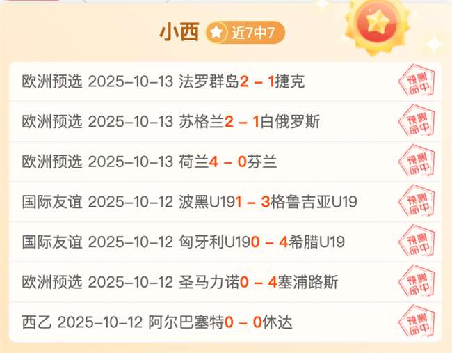 战绩回顾:状态势如破竹!是豪取7连胜!其中友谊赛的表现更是火热,近7胜6!今日公推一场欧预赛的比赛,冲击8连胜!