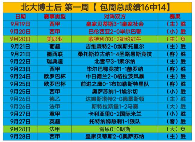 【十全十美】炸裂!!——昨晚私推阿甲+美职又双红,助力包周10中10全胜大满贯,连续三周实现英利(累计拿下28个胜场),祝贺三周跟全的老板!另外昨天文章9中7也是相当强势。上周完美收官,可喜可贺!新的一周,博士继续带领大家冲刺新的高度,各位老板——跟紧了!