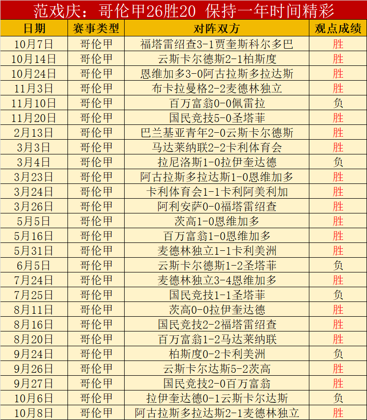 哥伦甲26胜20 初始数据异常比分格局呼之欲出
