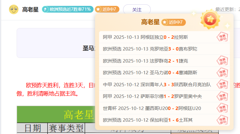 最近更新:2025-10-13 15:39 欧洲预选近7胜率71%近8中7