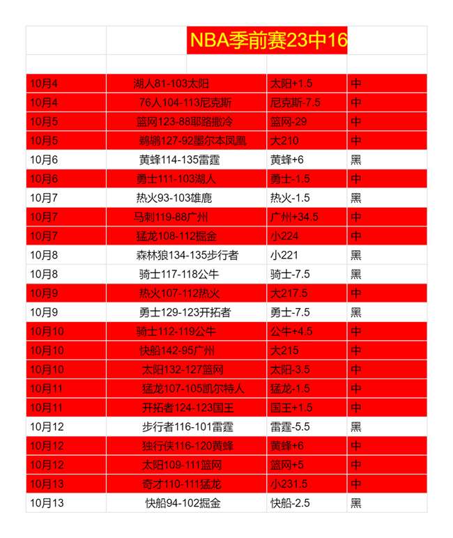 NBA季前赛保持稳定,昨天3/2,总23中16用心做足功课争取拿下,走的是长期稳定路线 才是最牛的