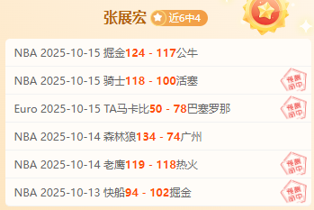 昨日3胜2。张展宏继续深挖数据,不吹不擂真实成绩有目共睹。继续为大家送上高质量和专业的赛事理解,敬请大家关注!