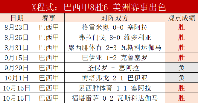 巴西甲8胜6,美洲赛事一如既往的好。昨天4胜3,大胜2天,再现惊人胜利魅力,优质的状态回归,状态好的时段多么出色大家应该历历在目的。