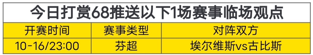 今日作者已私推赛事,赞赏68球币可获临场观点