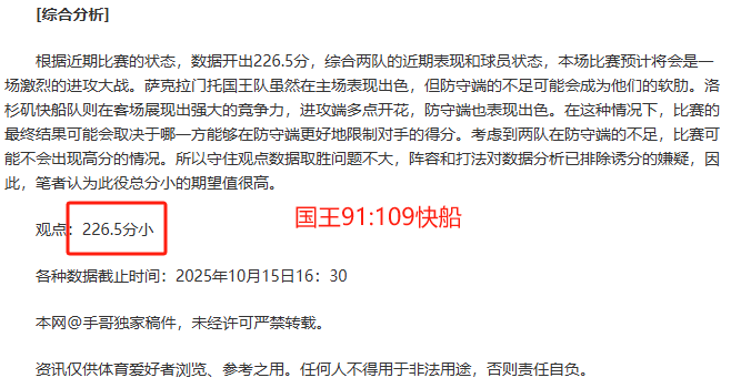 赛事回顾:昨天国王VS快船取胜,手哥本场信心预测,火力全开!作者潜心专研各大联赛的动态,本场作者演算优越概率再分析精彩赛事!运用大量篮球知识演算赛事分享给大家,专业的赛事分析有目共睹!深度调整过后将奉上精彩的赛事情报!紧随作者的步伐,收获胜利并非难事!