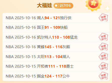 【上期回顾】近7胜6战绩,昨添3胜,专场NBA获得7胜6,本期赛事全力出击赛场解读有关剧本走势!福娃给出的数据分析能够高度精准把握赛事走向并识破有关数据的剧本伎俩,时刻关注数据的变动,本期结合冷热数据解锁胜利走向为大家送上专业的分析,把握好精选场次携手走上胜利的道路。