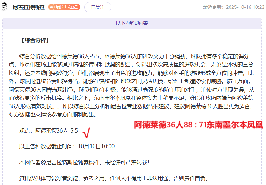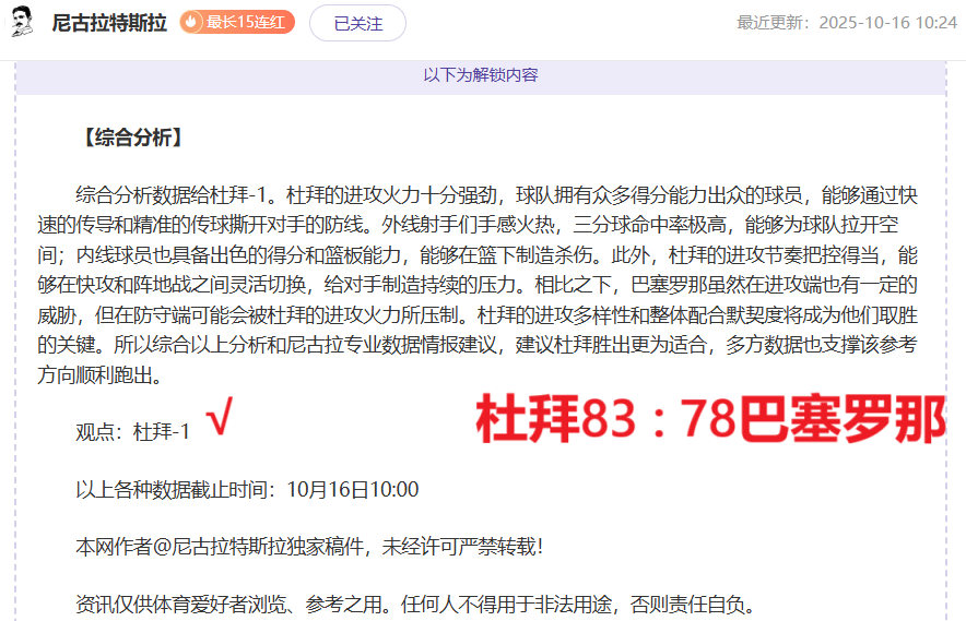 解锁内容包括:综合分析+比赛建议(数据观点+附加观点)