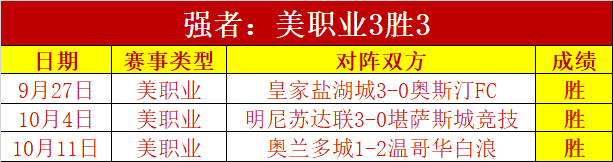 美职业3胜3,其实美职业一直精彩很高的,在7月3-7月26也曾拿下美职业7连胜的精彩连胜发挥。昨4胜3,近25天胜16天,累计胜+14,整体发挥值得认可,显然胜利的绝对优势占据主导