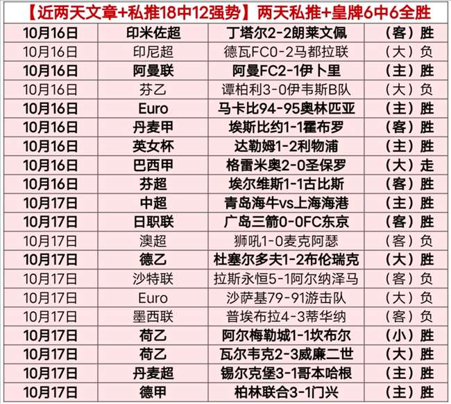 【战绩回顾】昨日文章+私推拿下10中6的成绩,近两天18中12强势!其中私推昨晚又三红。私推近两天4中4全胜!皇牌德乙昨晚也红,私推+皇牌含金量甚高,今天继续精挑细选,欢迎持续关注博士动态!