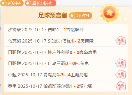 成绩回顾:6胜4,状态相当火热;今天我们将再次扬帆起航,继续乘胜追击,追求长期稳定的表现是笔者不变的目标,足球预言者将不断为大家精心挑选值得信赖的赛事,为大家提供参考。