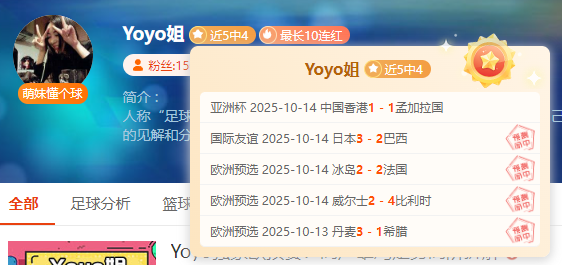 最近更新:2025-10-18 15:39 近5中4最长10连红