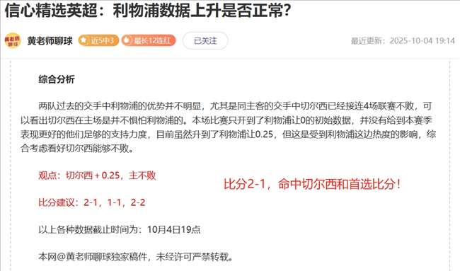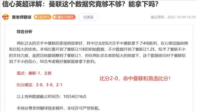 黄老师致力于研究各大赛事数据,拥有自己独创的数据模型,挑选的每场比赛都精心研究,我们以长线为主,长期效益非常不错,适合持续关注,保持一个好心态,我们一起共同进步!以下解锁内容包含:综合分析+观点方向+比分预测