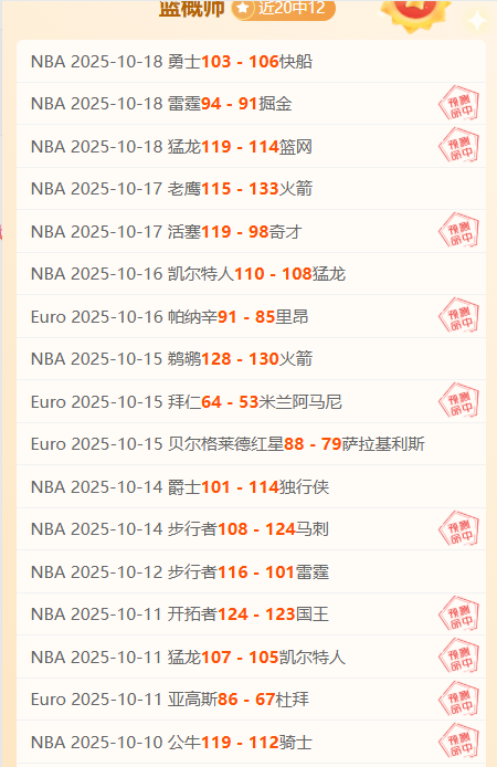 一、战绩回顾:昨天NBA季前赛1对1错,今天没有NBA了,先吃一下其他比赛,有需要的朋友请查收。