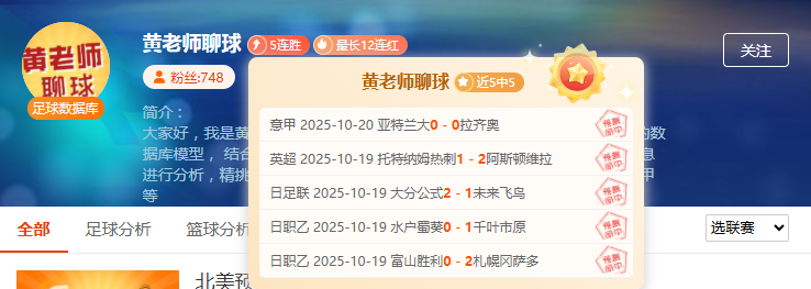 数据库模型大师黄老师聊球”- 5连胜 英超热刺VS维拉、日职乙富山胜利VS札幌冈萨多、日足联大分公式VS未来飞鸟稳健命中!黄老师聊球,结合数据模型精挑赛事,带你稳中求盈!