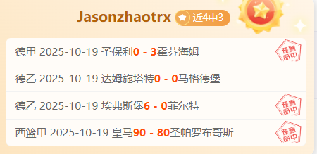 【战绩回顾】命中德甲比分弗莱堡2-2法兰克福,海登海姆2-2云达不来梅,拜仁2-1多特蒙德,命中德乙比分纽伦堡1-1荷印尔斯泰因,命中足球方向近4胜3,命中篮球方向近5胜4!