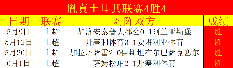 土耳其联赛4胜4,今天分析一场信心好的土甲赛事。近12天有7天胜利发挥,胜+6,而且有3天是5胜4和1天4胜3的大胜发挥,胜+增长速度值得认可。