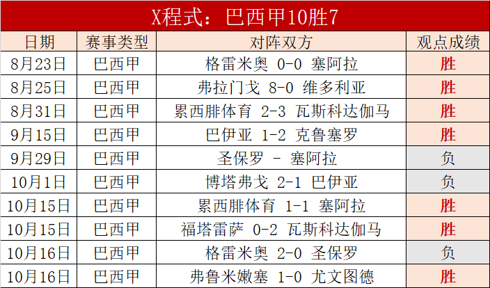 巴西甲10胜7,昨天美洲赛事厄瓜甲胜利,美洲赛事一直发挥十分出色。昨胜利发挥,6天胜4天,合计胜+4,整体发挥值得认可。