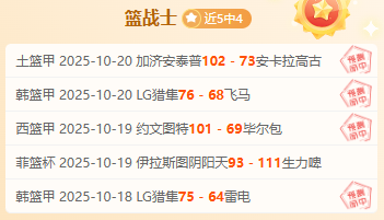 【赛事回顾】上期韩篮甲和土篮甲获胜,作者本场乘风破浪继续前行,所有的战绩不是偶然的幸运所能达到,连胜的结果不是靠侥幸就能得到!让作者充分展现出对各大篮球联赛分析的专业知识及数据统计能力。本期作者利用大数据分析,演算出赛事有利方案!