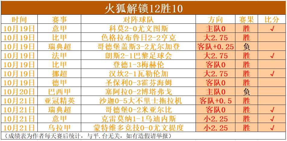 【小女子状态回顾】近期火狐状态依旧有保证,昨天送出的4场解锁全部打出,解锁近12胜10,并连中6场比分!今天别忘了继续关注火狐的动态哦!