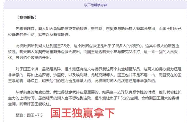 以下为解锁内容:含赛事解析+数据分析+观点参考