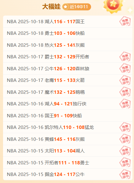 【上期回顾】近14胜11,上期NBA获得胜利,专场NBA本期赛事全力出击赛场解读有关剧本走势!福娃给出的数据分析能够高度精准把握赛事走向并识破有关数据的剧本伎俩,时刻关注数据的变动,本期结合冷热数据解锁胜利走向为大家送上专业的分析,把握好精选场次携手走上胜利的道路。