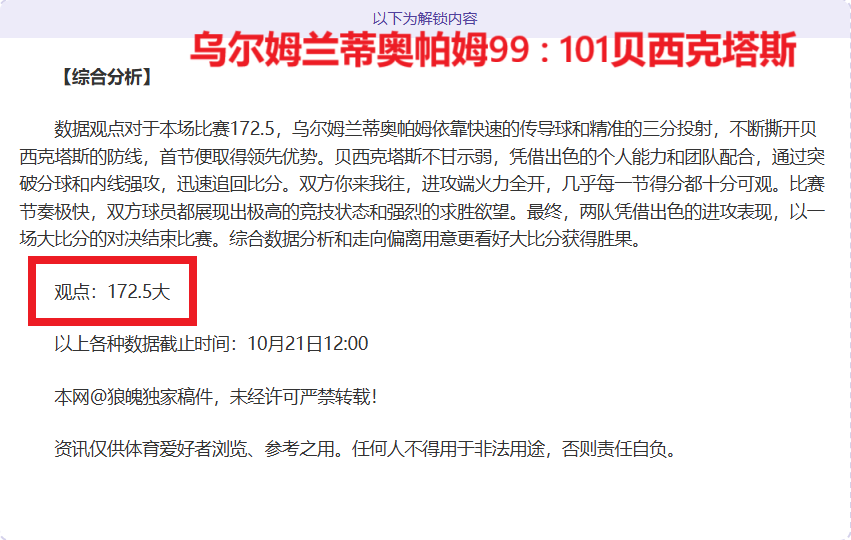 解锁内容包括:综合大数据分析+分解赛事走向+比赛建议+作者观点数据