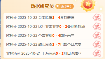 最近更新:2025-10-22 13:43 欧冠杯近19胜率74%近8中6
