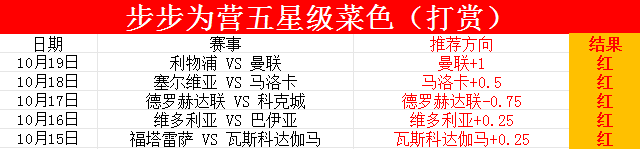 休整两天后归来重新出发,近18中11,今天继续带领大家收获成功;五星级菜单方面,此前利物浦1-2不敌曼联,笔者推送曼联+1顺利命中!五星级菜单5联赛。想要获得五星级菜单的朋友可以在打赏文章下方点击打赏88球币即可获得推送。