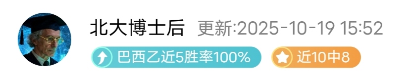 最近更新:2025-10-24 18:56 巴西乙近5胜率100%近11中9