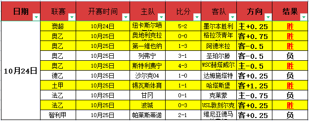 昨天表现出色,整体拿下10胜6净+2!昨天数据中,澳超的表现非常的炸裂,完美的大胜拿下,非常的精彩!而奥乙的表现也非常的精彩,整体拿下4胜3,非常的给力!当然土甲的表现也非常的优秀,完美的大胜拿下!