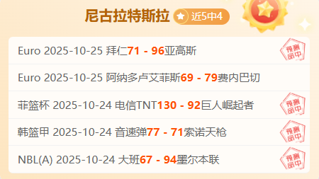 【成绩回顾】近5胜4,昨下午场三战全胜,NBL、韩篮甲、菲篮杯、Euro拿下胜利,尼古拉资深作者情报解读再有方法,信心强项情报解读连胜赛事再次出发,长期解读惊喜不断,此前作者创下4次双位数胜战绩,掌握着一手赛事资深情报,本期继续分享充满奇妙体育赛事,敬请大家持续关注!!