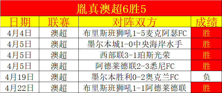 澳超6胜5精彩度相当高。昨天5胜4,17天胜10天胜+12,胜+增长速度很精彩!