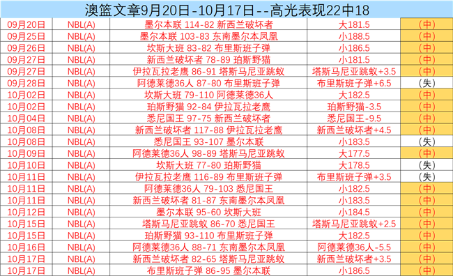墨尔本联上赛季是29场是19胜10负的成绩,进攻的是96,防守的是91,主场是9胜6负,客场是10胜4负的表现。季后赛是,墨尔本联2-1珀斯野猫,墨尔本联成功晋级,不过总决赛,伊拉瓦拉老鹰3-2墨尔本联,墨尔本联还是遗憾落败了,无缘总冠军。近期是一些季前赛,布里斯班弹90-108 [37-52]墨尔本联,墨尔本联98-60 [43-39]布里斯班弹,珀斯野猫84-78 [44-39]墨尔本联,东南墨尔本凤凰101-107 [49-40]墨尔本联,墨尔本联116-91 [67-46]坎斯大班。本场比赛一起看看。