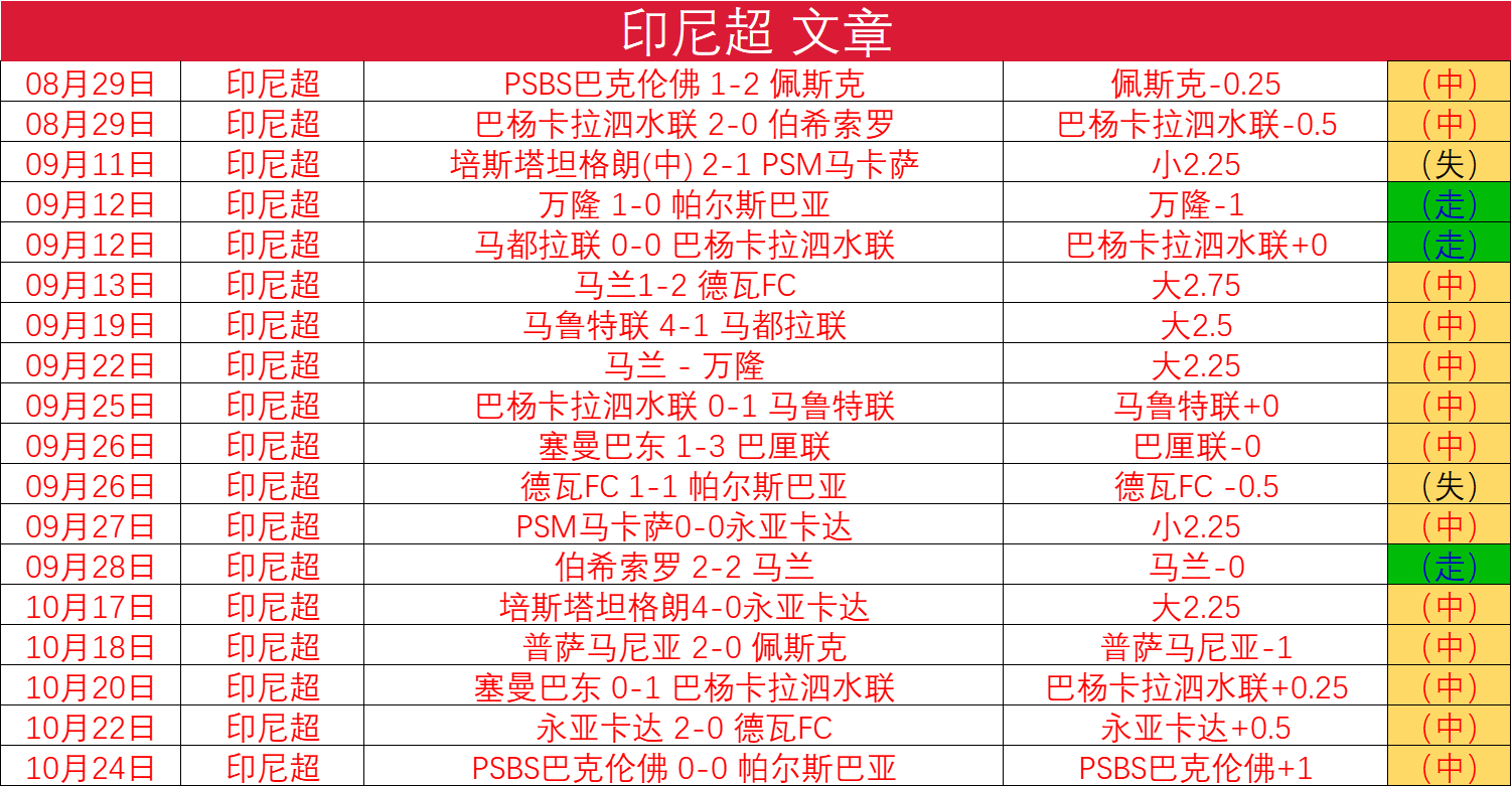 最近更新:2025-10-26 09:30 印尼超近9胜率89%近8中6