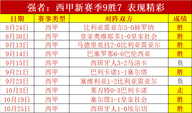 西甲昨天胜利,现在9胜7,新赛季的西甲发挥出色。近8天胜6天胜+11,近32天胜23天,累计胜+22,整体发挥非常值得认可,显然胜利的绝对优势占据主导