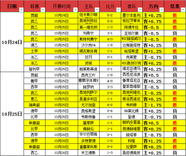 昨天表现稳定!昨天数据中,奥乙、意乙和希腊超的表现非常的出色,全部都完美的大胜拿下,非常的精彩!德甲和比甲都是一胜一负表现平稳!