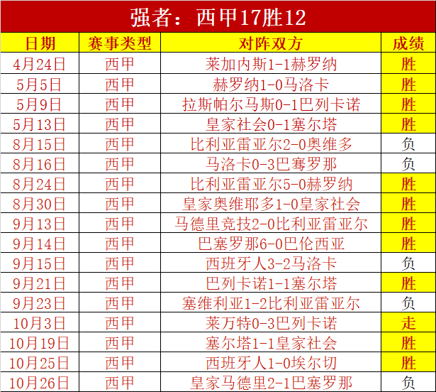 西甲17胜12,新赛季的西甲发挥出色。10天胜7天胜+11,近34天胜24天,累计胜+22