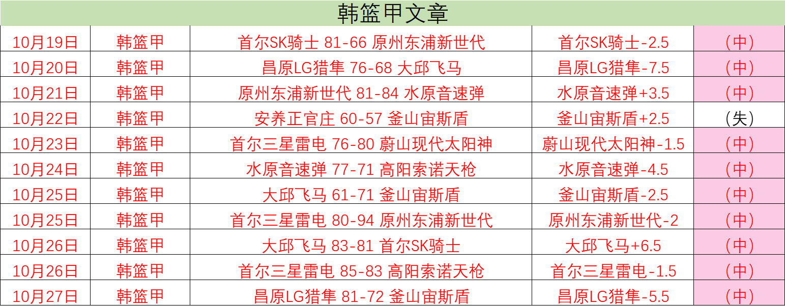 首尔SK骑士上赛季是41胜13负的成绩,进攻端是79.4,防守端73.9,主场是21胜6负,客场是20胜7负,季后赛是首尔SK骑士3-1水原音速弹,总决赛是,首尔SK骑士3-4昌原LG猎隼,首尔SK骑士无缘总冠军。新赛季近期成绩,昌原LG猎隼81-89 [42-33]首尔SK骑士,高阳索诺天呛68-79 [39-45]首尔SK骑士,首尔SK骑士80-70 [38-39]首尔三星雷电,首尔SK骑士58-62 [23-27]昌原LG猎隼,昌原LG猎隼51-54 [17-29]首尔SK骑士,一起看看一起分析。新赛季,首尔三星雷电3胜5负,首尔SK骑士3胜5负,