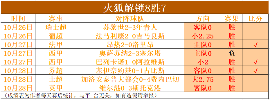 【小女子状态回顾】近期火狐状态依旧有保证,昨天解锁送出的芬超、土超和英甲全都顺利打出,目前还有一场美职正在进行当中,解锁喜获4连胜,近8胜7!今天别忘了继续关注火狐的动态哦!