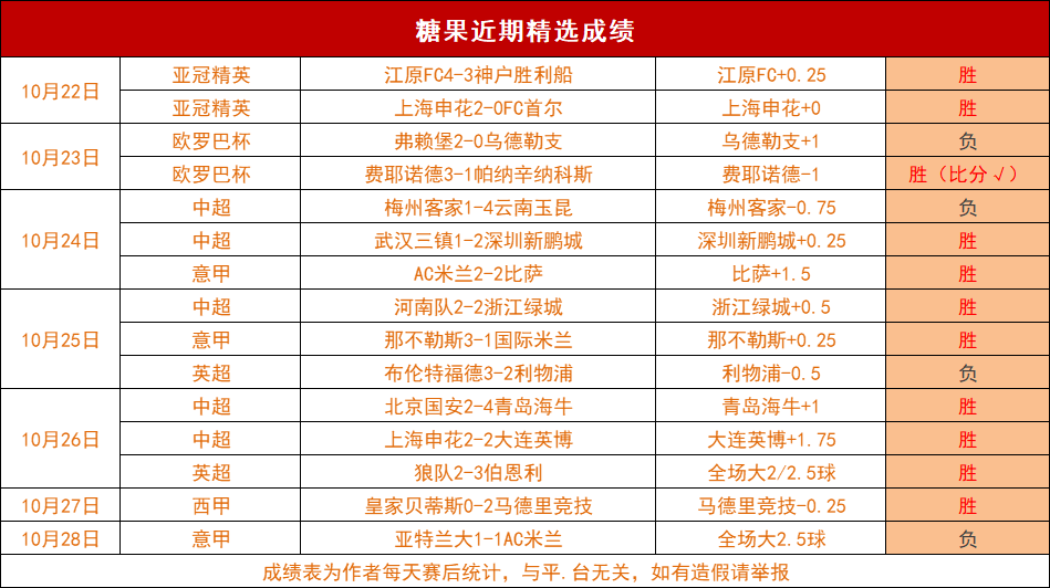 战绩回顾:昨天精选的意甲失利!近期精选15胜11!今天赛事不错,精选带来一场意甲焦点战,力争胜起来!欢迎大家打赏或包周支持,我们按计划稳定取胜!