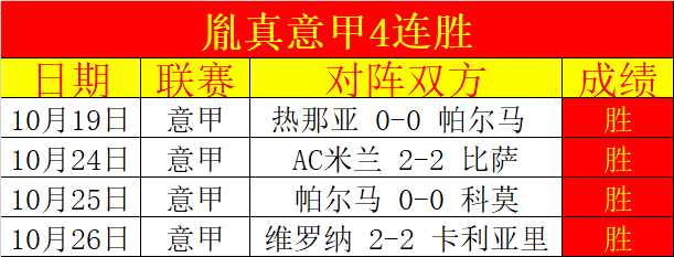 意甲4连胜,意甲发挥精彩。昨胜利发挥,21天胜12天胜+13,胜+增长速度很精彩。