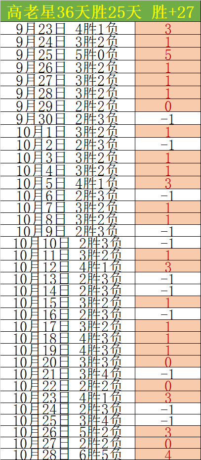 昨6胜5,连续3天精彩,36天胜25天,合计胜+27,令人惊叹的胜+值得骄傲,胜利清晰地占据主流!