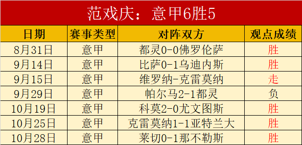 意甲6胜5,精彩度很高的五大联赛。昨天5胜4,近19天胜15天,合计胜+18,胜+表现尤其突出。9月15日打出10连胜,17连胜记录也是在近期出现的,大胜是频繁出现的高超实力。